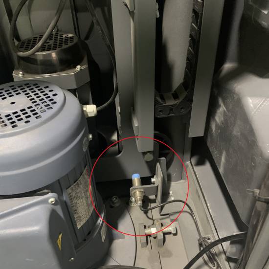 從下面來看的話,纏繞機的立柱底部有一個圓柱形的接近開關,用來控制膜座的下限位,當膜座小車下降至下限位被接近開關感應到時,膜座小車就不會繼續(xù)再下降。此接近開關的另一個作用是通過調節(jié)下限位來使纏繞膜的*低點下降,可以把貨物和托盤更加緊密貼合,貨物更不易從托盤上滑落。當接近開關損壞,在纏繞機正常運行時,膜座便會由于感應不到下限位而一直下降,直至觸發(fā)防壓開關才會停止;此接近開關損壞還將導致部分含自動斷切膜裝置的設備斷切功能受影響。當其損壞時,必須*一時間聯(lián)系售后對此開關進行更換。