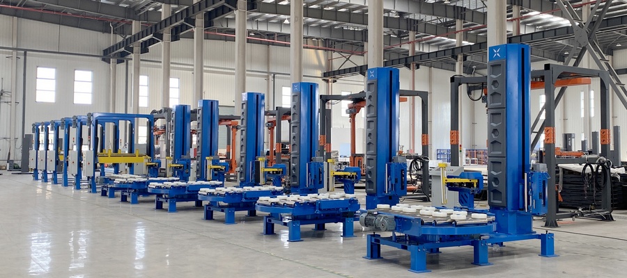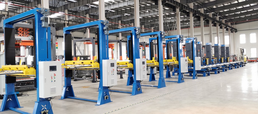 值得一提的是,此批流水線配套設(shè)備為6套S300在線纏繞機(jī)+覆頂膜機(jī),并根據(jù)客戶定制需求,披上了“藍(lán)色盔甲”。12位“藍(lán)衣騎士”直立于小黃蜂智能制造工廠,嚴(yán)陣以待,整裝待發(fā)!