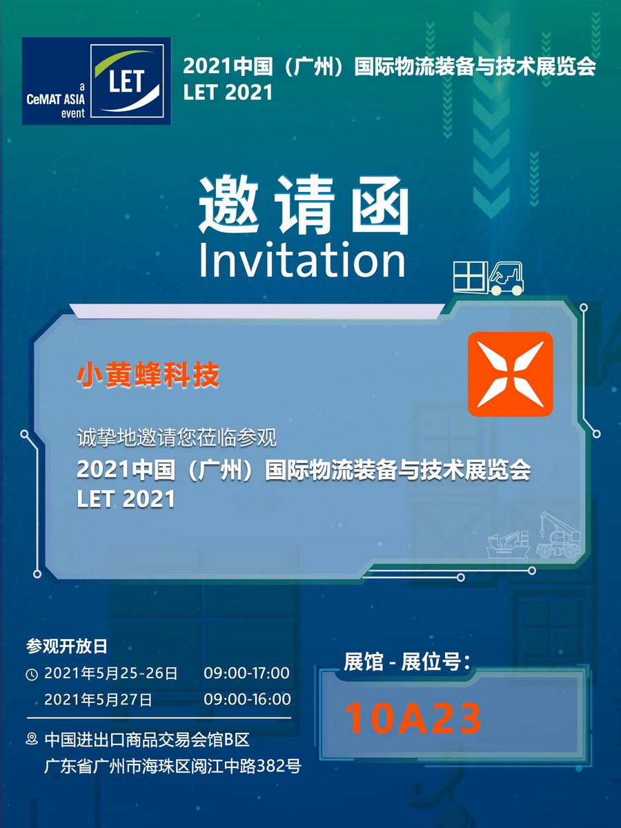 小黃蜂 | 邀請(qǐng)函:2021中國(guó)(廣州)國(guó)際物流裝備與技術(shù)展覽會(huì)!