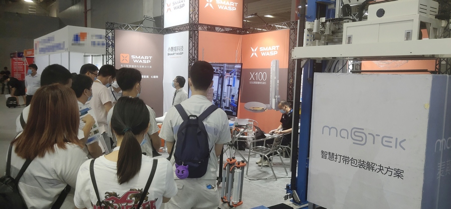 展會(huì)上,以“專(zhuān)注智慧纏繞包裝解決方案”&“更好的智慧打帶包裝解決方案”為主題,小黃蜂和麥斯泰克分別以全自動(dòng)上切膜系統(tǒng)、多層控制系統(tǒng)、自動(dòng)制繩系統(tǒng)、X-Line物聯(lián)網(wǎng)系統(tǒng)以及穿劍打帶結(jié)合纏繞一體、全自動(dòng)頂部上切膜系統(tǒng)等技術(shù)研發(fā)實(shí)力,成為了本屆展會(huì)的一大亮點(diǎn)。