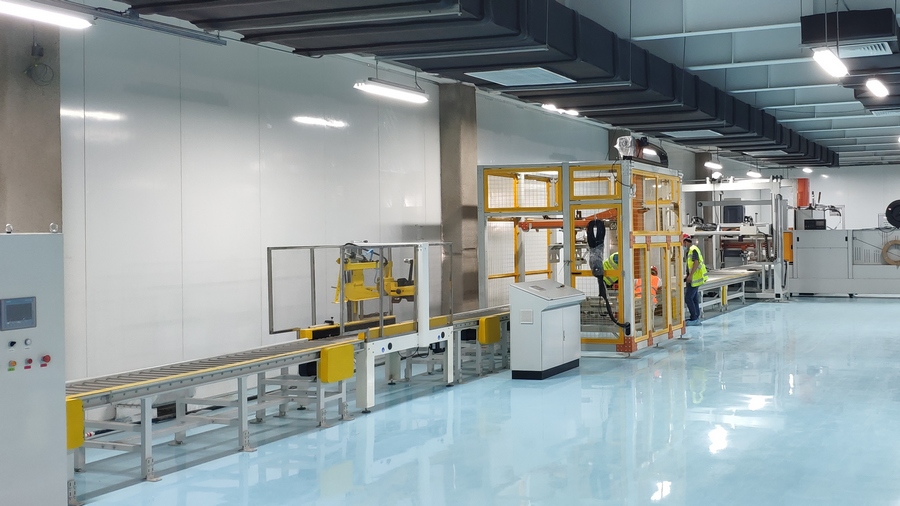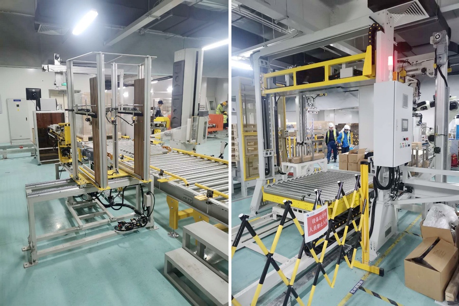 近日,小黃蜂攜通過式覆頂機、S300在線纏繞機聯(lián)合麥斯泰克MK300全自動穿劍式打包機以及自動上護(hù)角機、自動側(cè)護(hù)角機、旋轉(zhuǎn)移栽車,成功建立天津高端半導(dǎo)體產(chǎn)業(yè)園自動化流水線的二期項目,并進(jìn)入調(diào)試尾聲階段,收官在即!