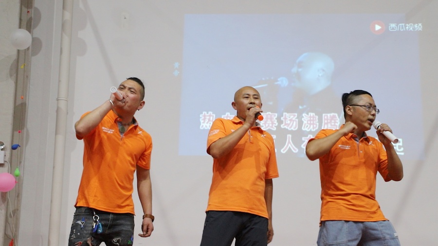 隨后,小黃蜂各個部門輪番上場,為大家?guī)砹宋璧浮妒訇嚲€聯(lián)盟》、《快樂崇拜》、《抓錢舞》、《愛天愛地》、《踏浪》,手語舞《不放棄》,扇子舞《中國功夫》,男聲合唱《相信自己》、歌曲《玫瑰》、《單車》,《麻辣脫口秀》等精彩表演,將晚會推向一個個高潮!