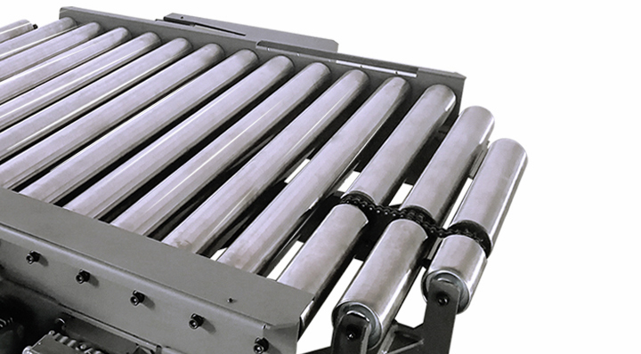 與前后輸送線的過度滾筒采用鏈條傳動式,避免了傳統(tǒng)無動力過度滾筒前后輸送線在銜接輸送過程中的動力中斷造成的卡頓問題。