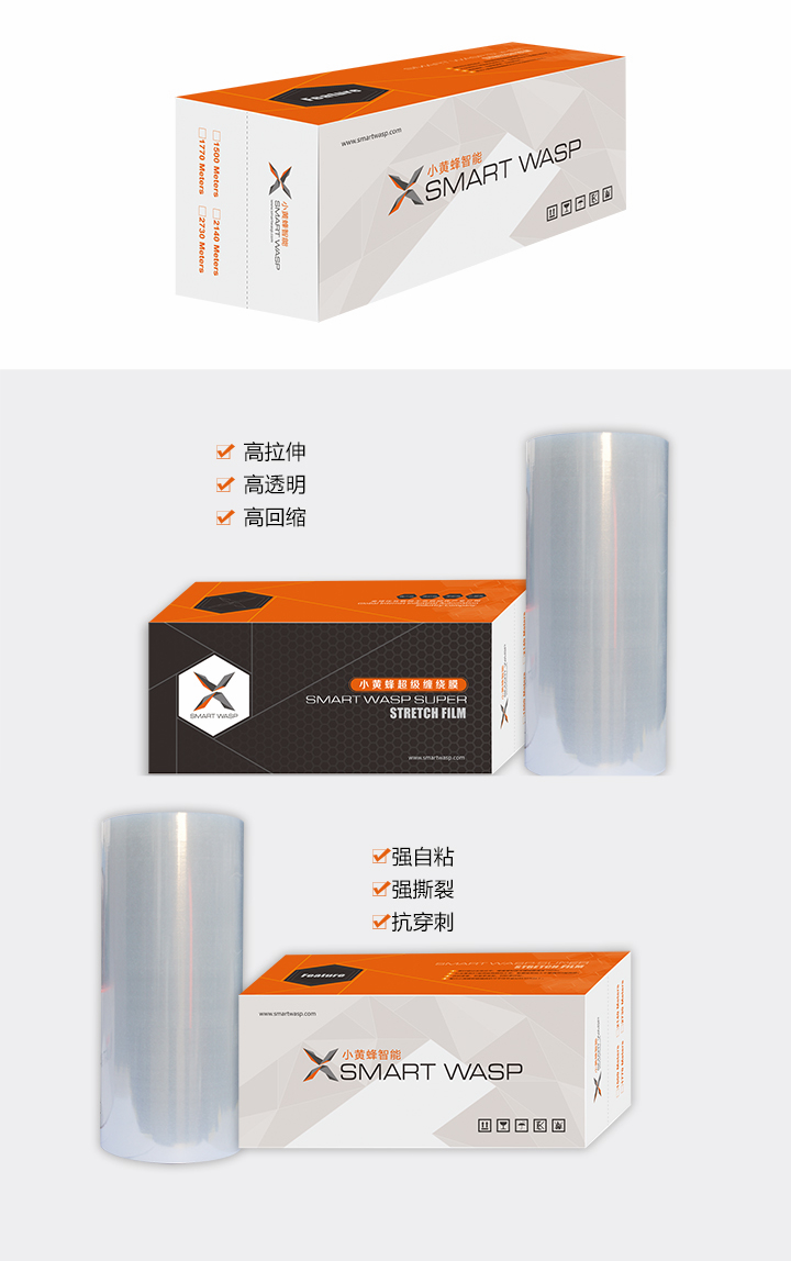 配合小黃蜂智能纏繞機使用,預拉比達350%并且無縮邊現(xiàn)象,提高膜的使用效率。